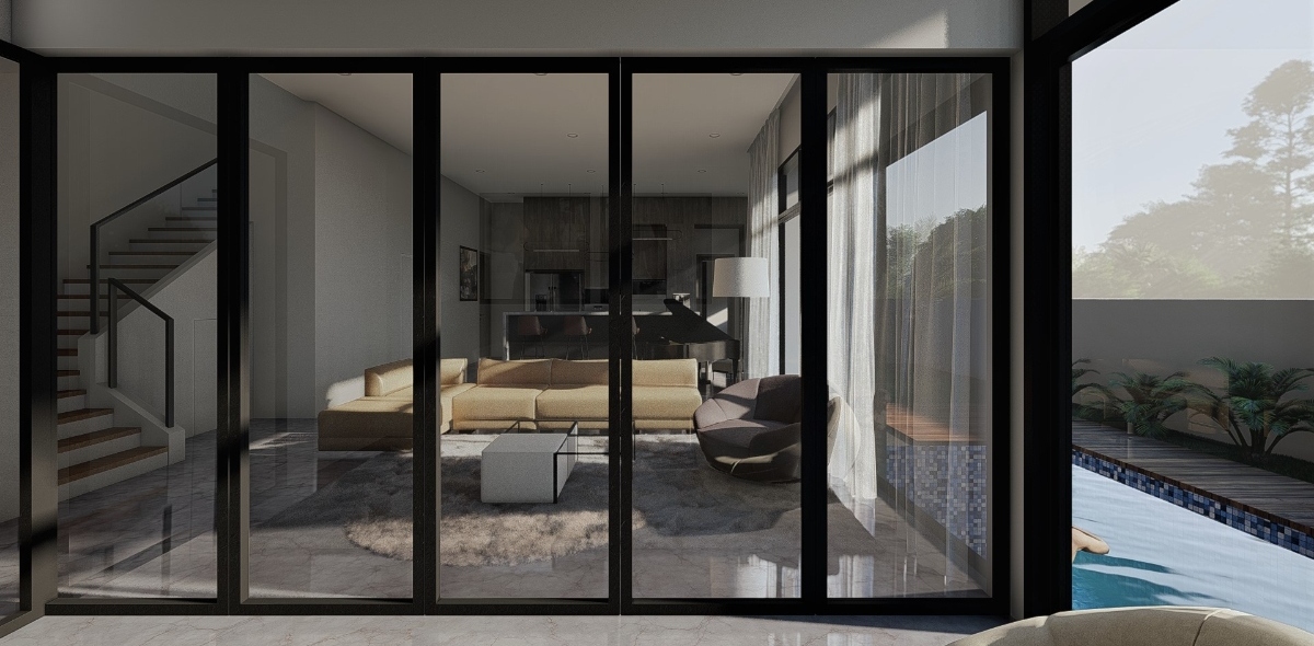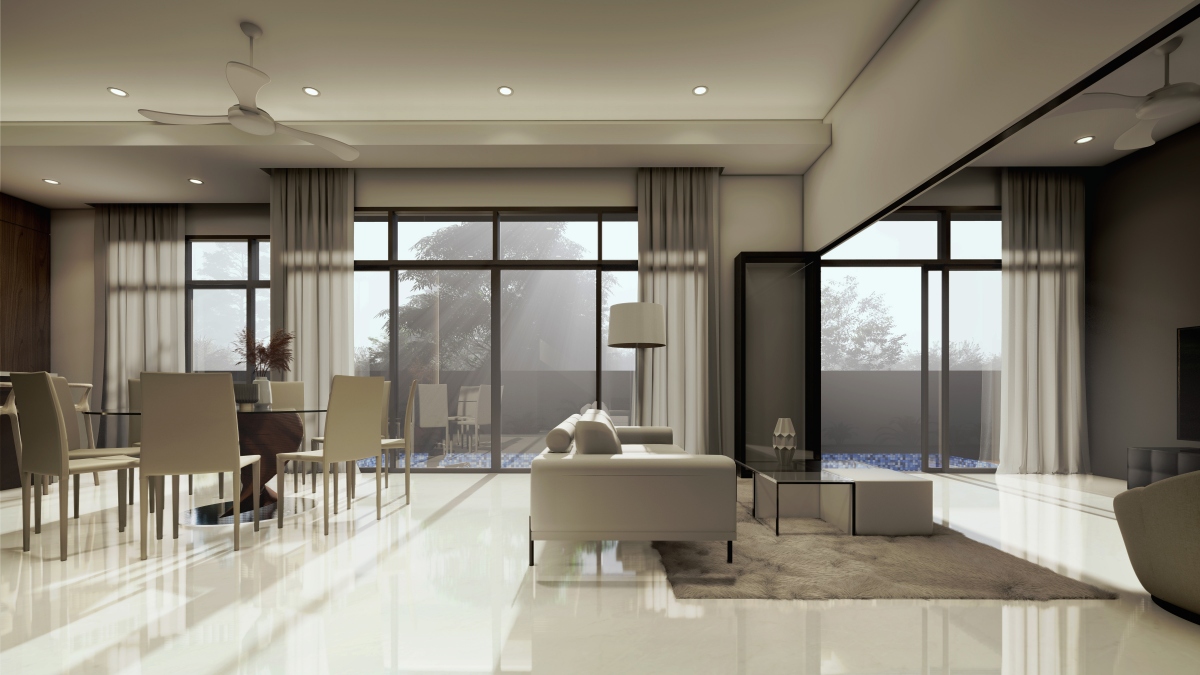 This 3-storey house has 4 bedrooms and approximately 5,731 sqft in GFA, featuring high ceilings and generous functional spaces. Several noteworthy features include a sunken swimming pool, two open roof terraces, and a professional indoor gym