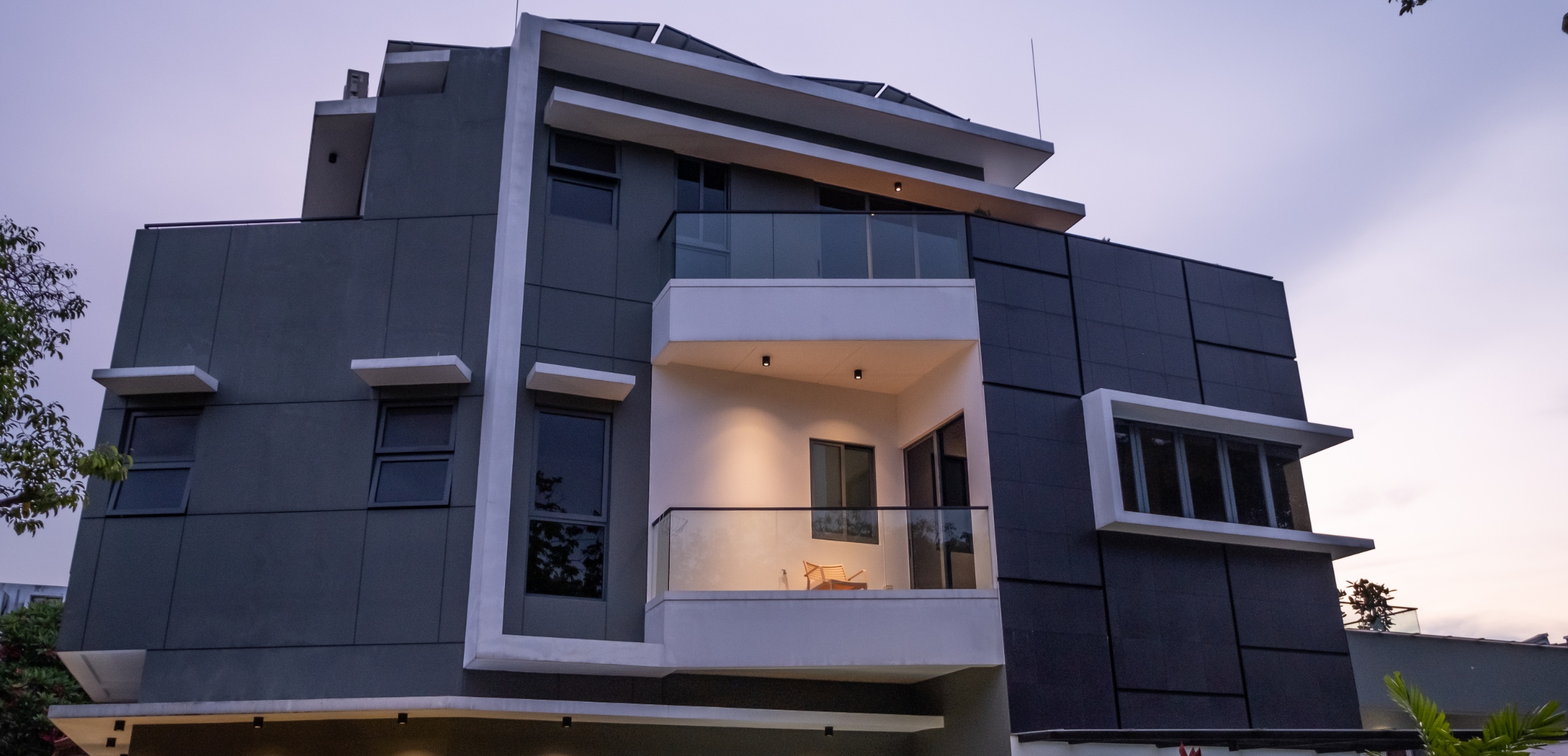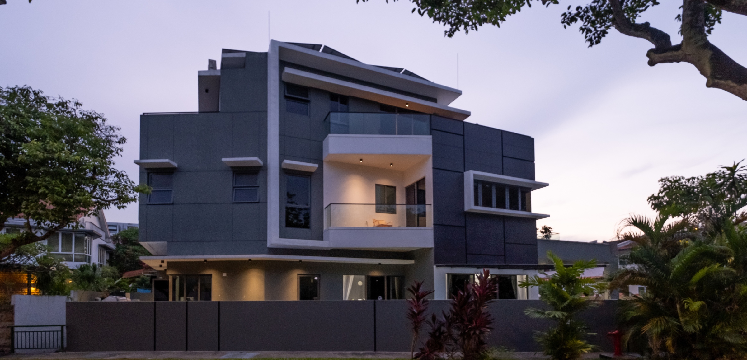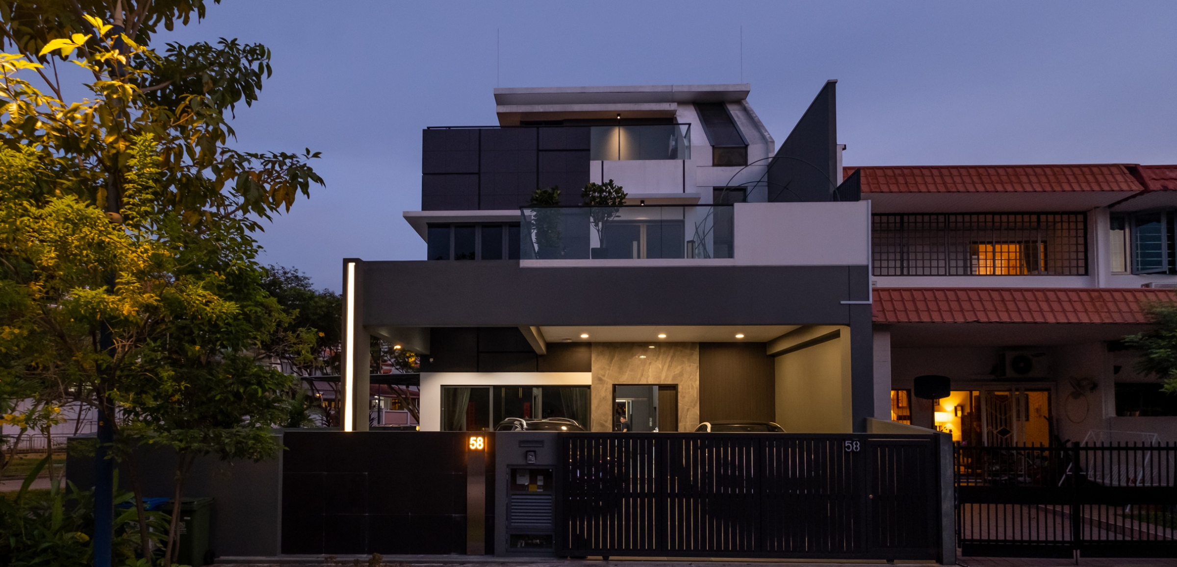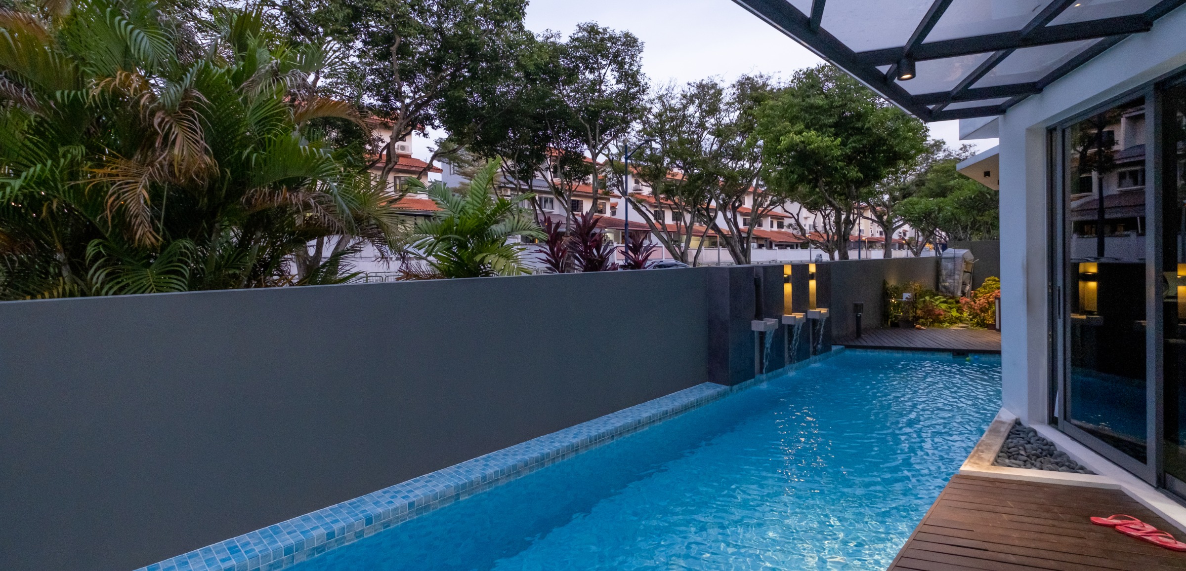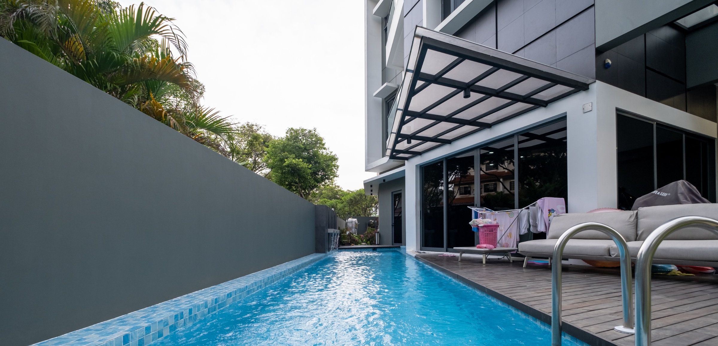 Spanning 2.5 storeys, this residence blends simplicity with tailored functionality. A swimming pool traces the perimeter, seamlessly linking the living and dining spaces. Upstairs, three rooms are designed around a family hall, including a versatile guest room that doubles as a cinematic escape. Occupying the attic is a master bedroom with a private entertainment enclave