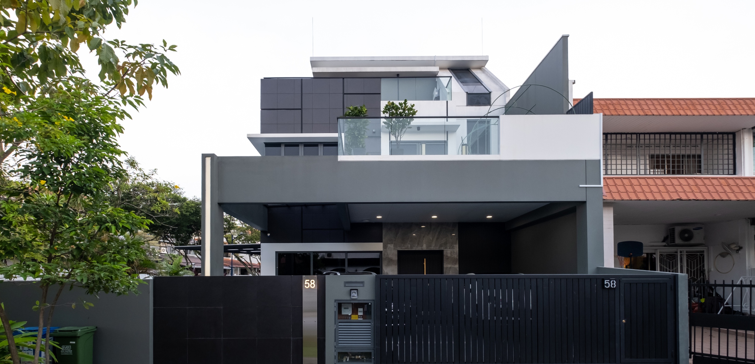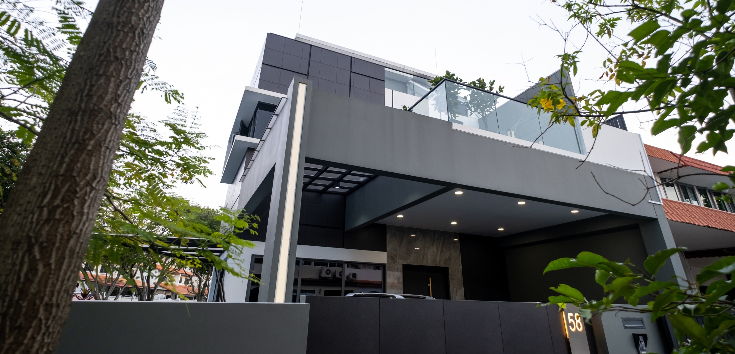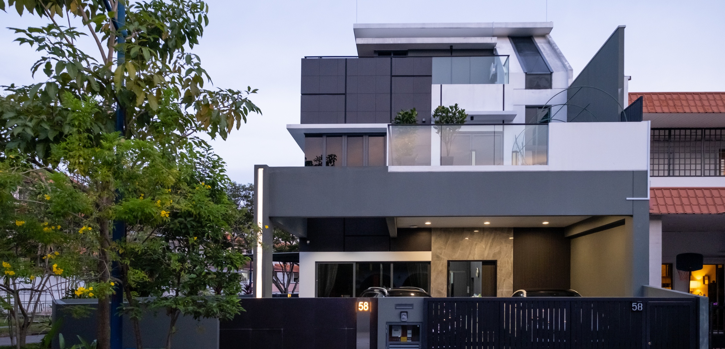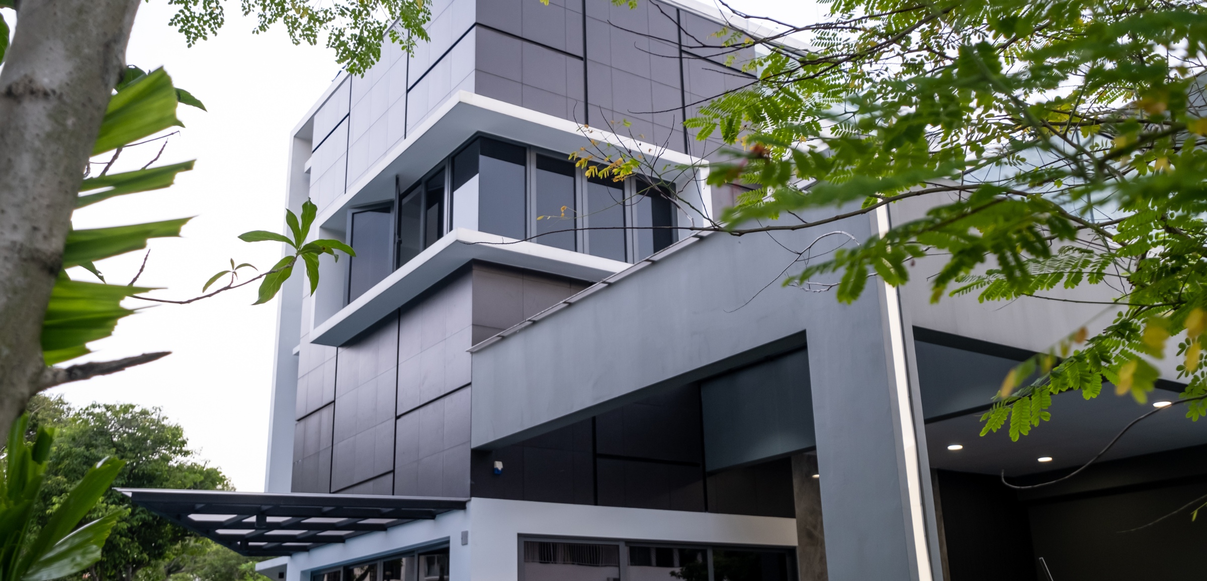 Spanning 2.5 storeys, this residence blends simplicity with tailored functionality. A swimming pool traces the perimeter, seamlessly linking the living and dining spaces. Upstairs, three rooms are designed around a family hall, including a versatile guest room that doubles as a cinematic escape. Occupying the attic is a master bedroom with a private entertainment enclave