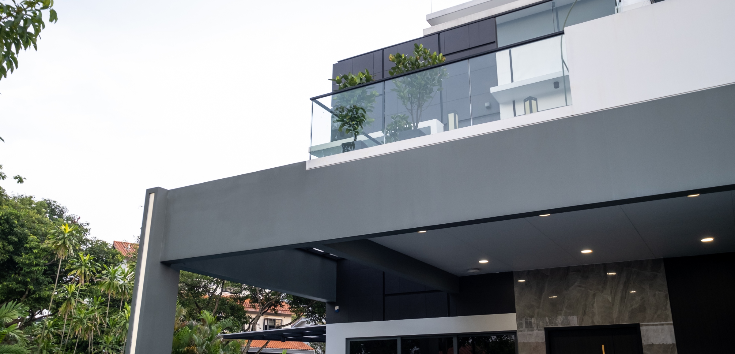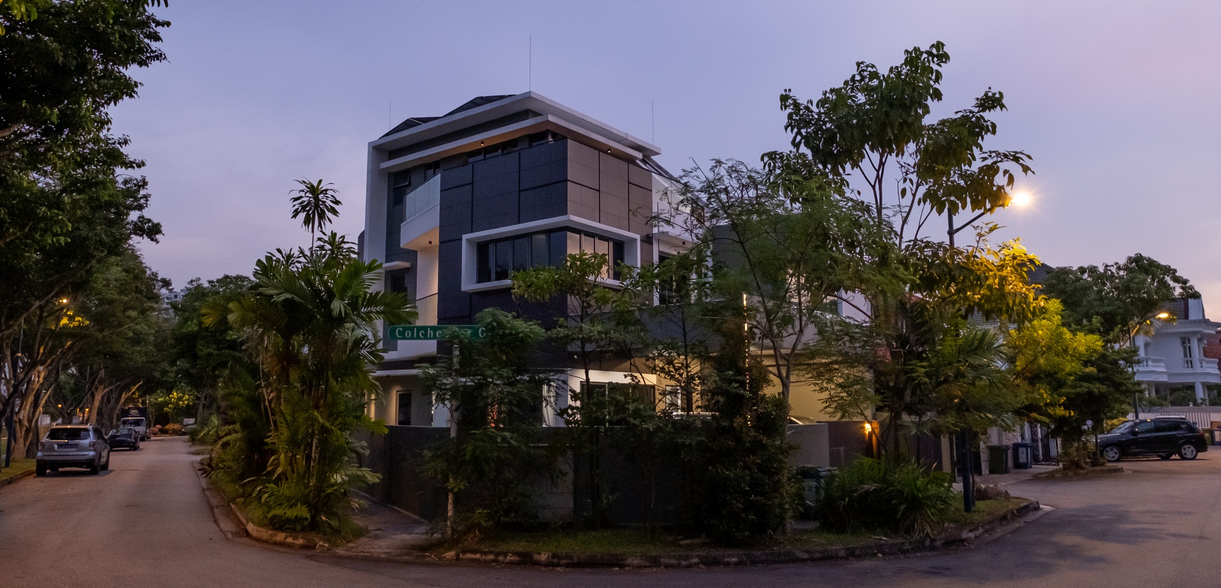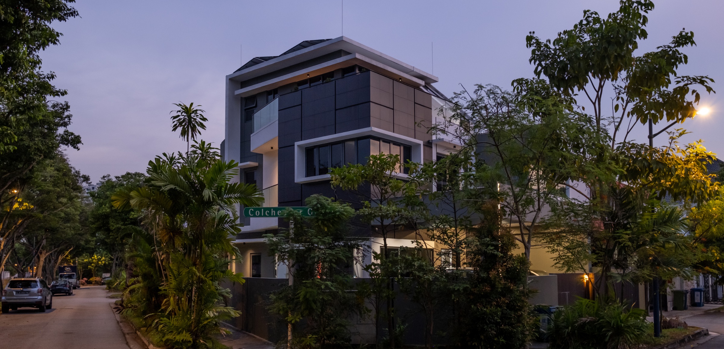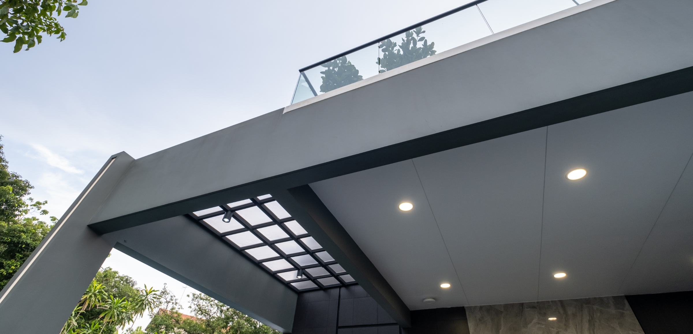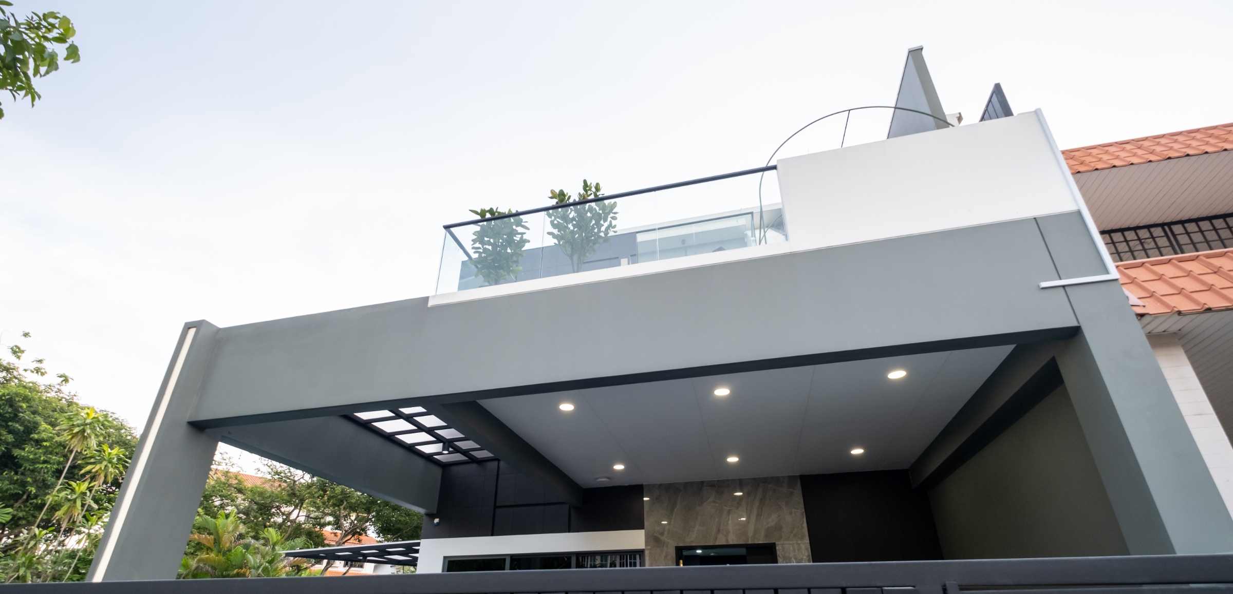 Spanning 2.5 storeys, this residence blends simplicity with tailored functionality. A swimming pool traces the perimeter, seamlessly linking the living and dining spaces. Upstairs, three rooms are designed around a family hall, including a versatile guest room that doubles as a cinematic escape. Occupying the attic is a master bedroom with a private entertainment enclave
