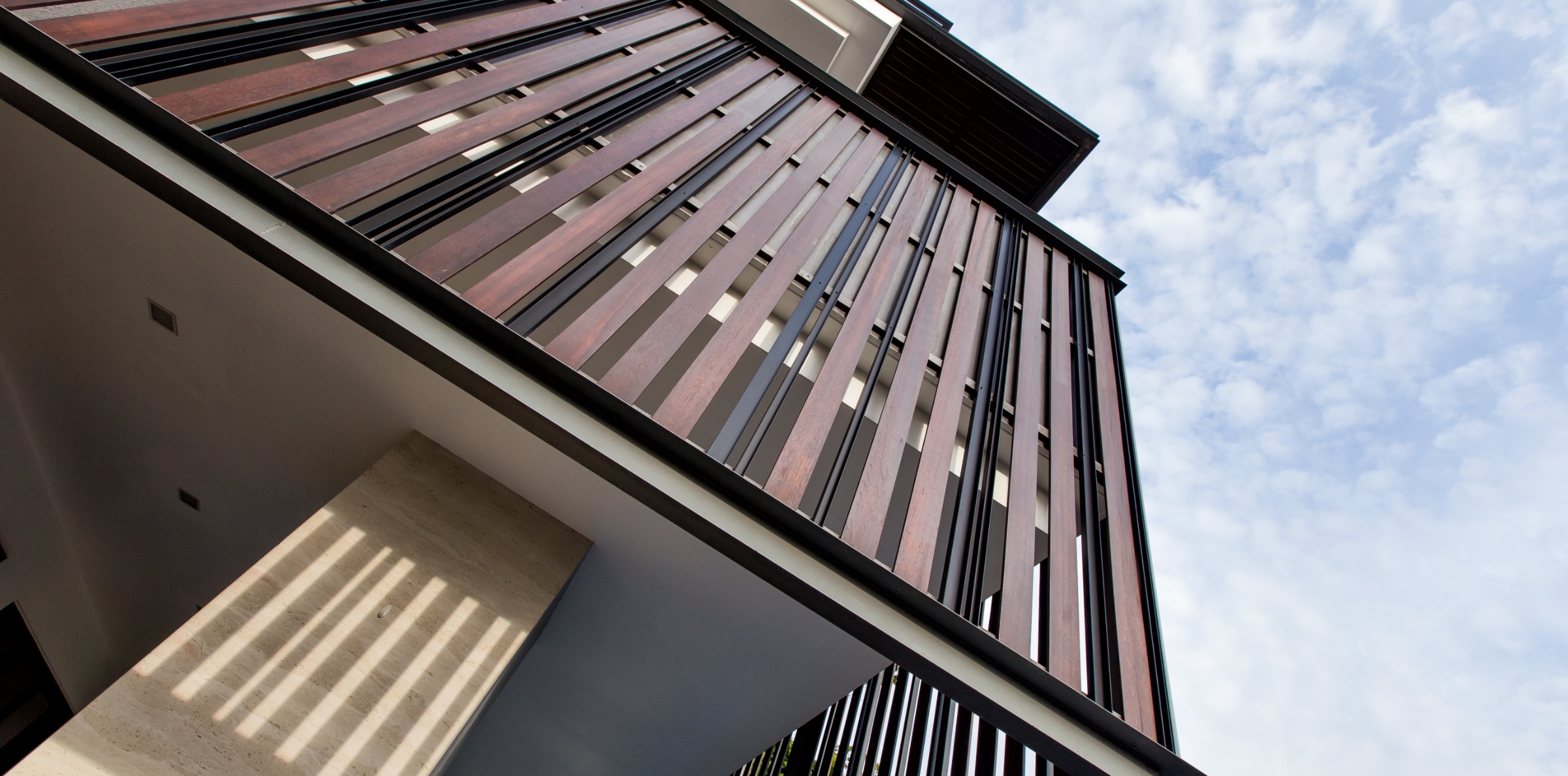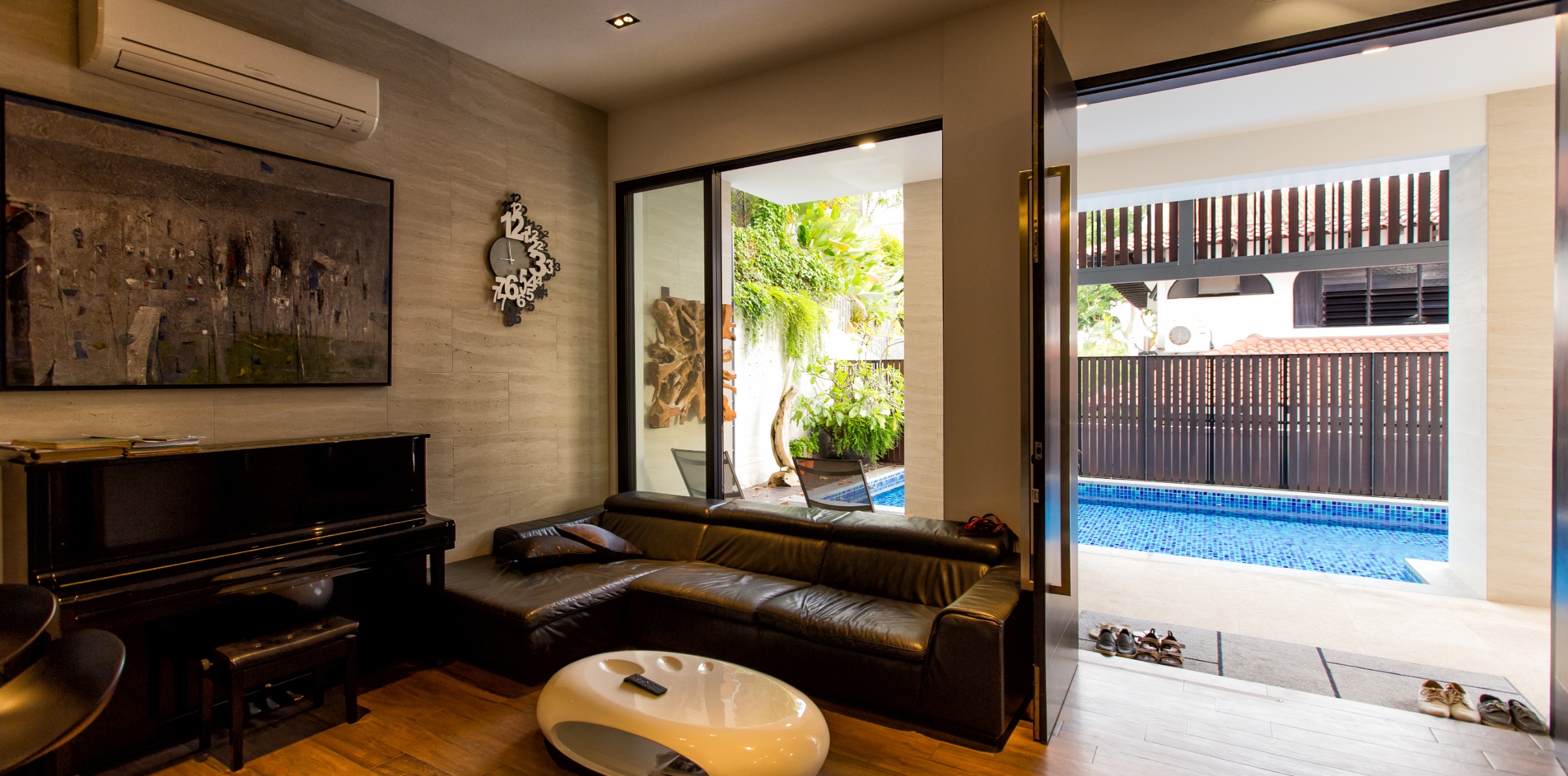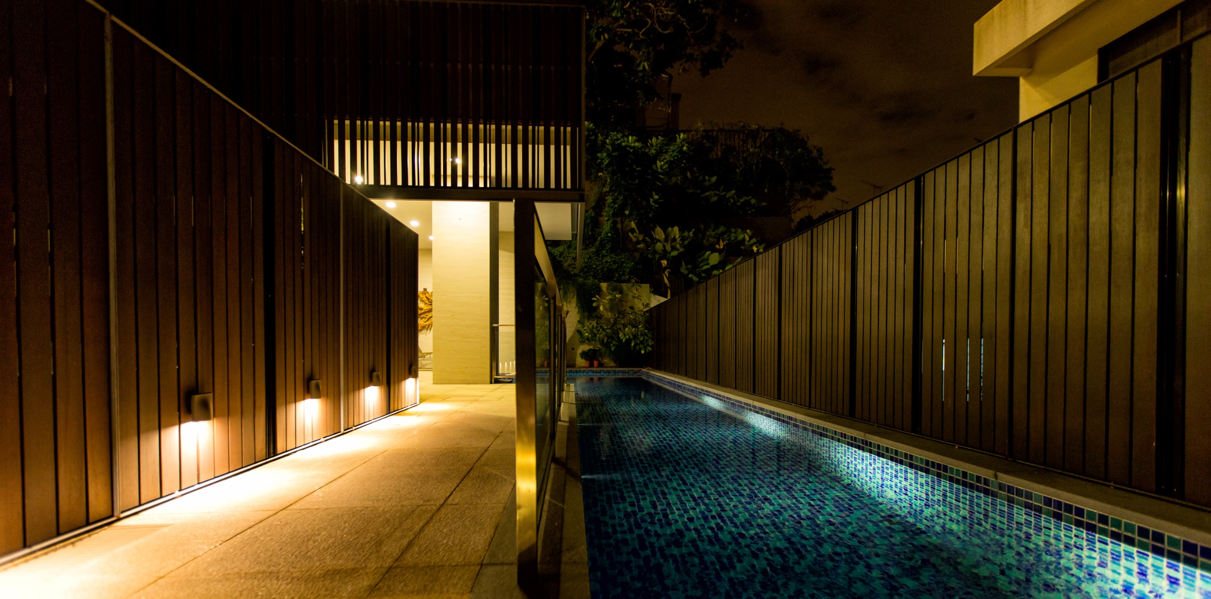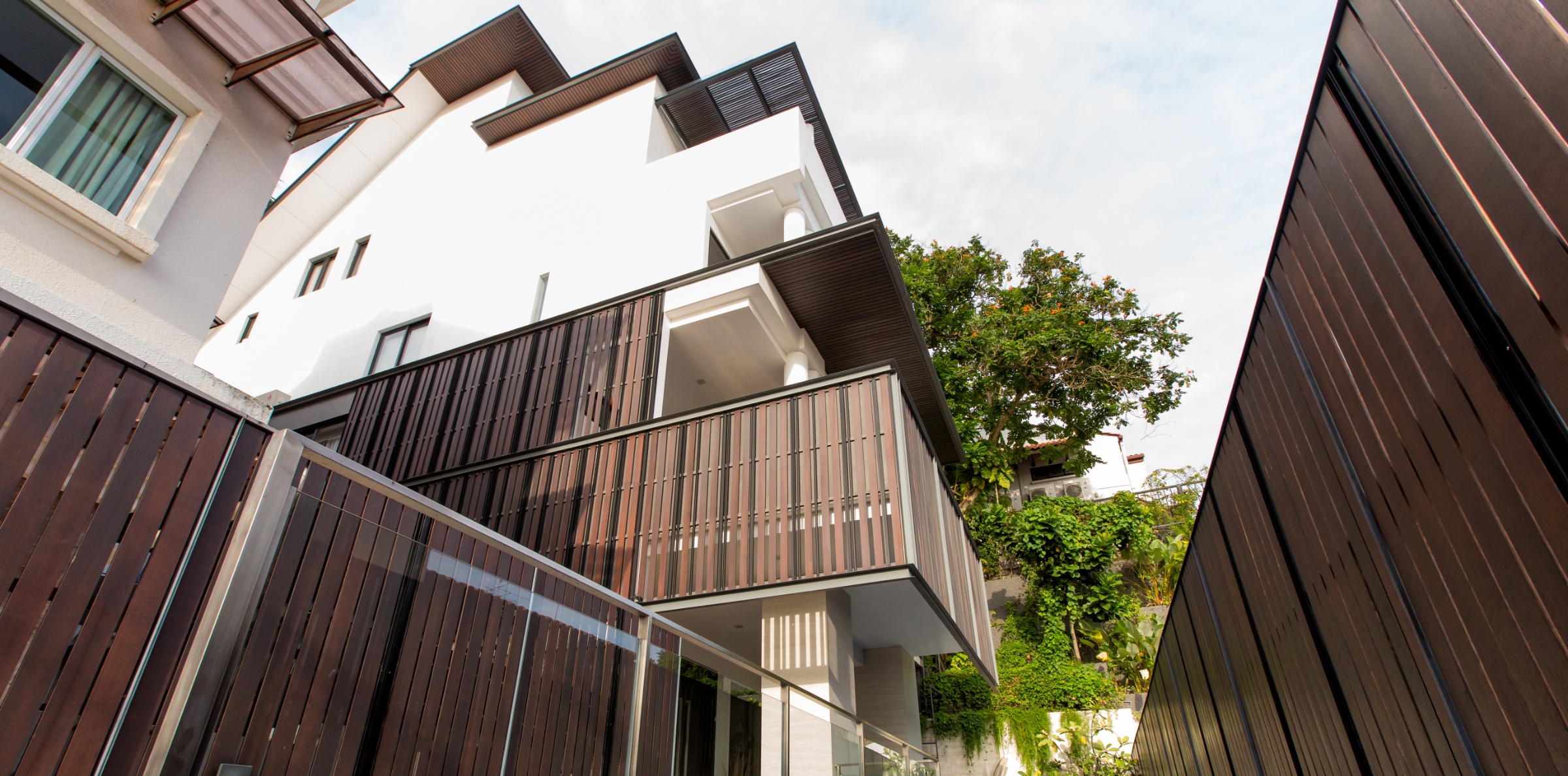 Eng Kong Place lends influence from mid-century modern architecture. Nestled on a slope, we emphasized the natural aesthetic of the property with a tiered garden feature wall. The unique terrain of the property was maximized across the built-up area and efficient planning of external features. Internally, an eclectic interior style was used to accommodate distinct preferences of the homeowners