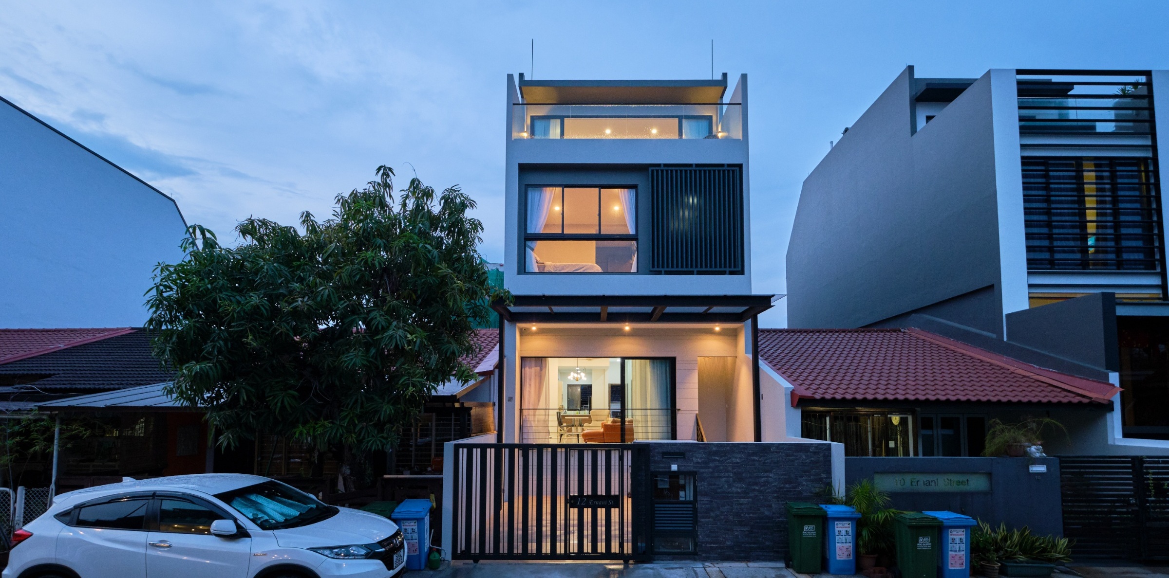 Ernani Street was commissioned as an inter-terrace redevelopment. We fulfilled the brief via a 2-storey contemporary home, complemented with an Attic storey. The interiors emphasize clean, wood finishings, coherent with a modern scandinavian aesthetic