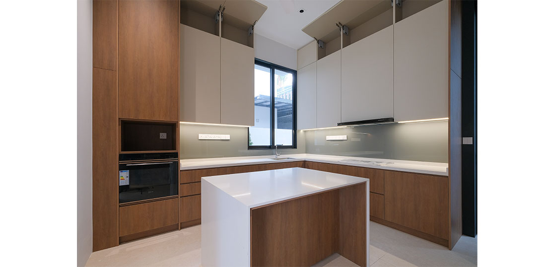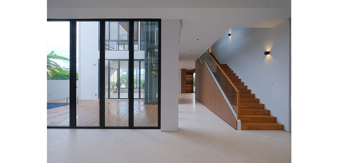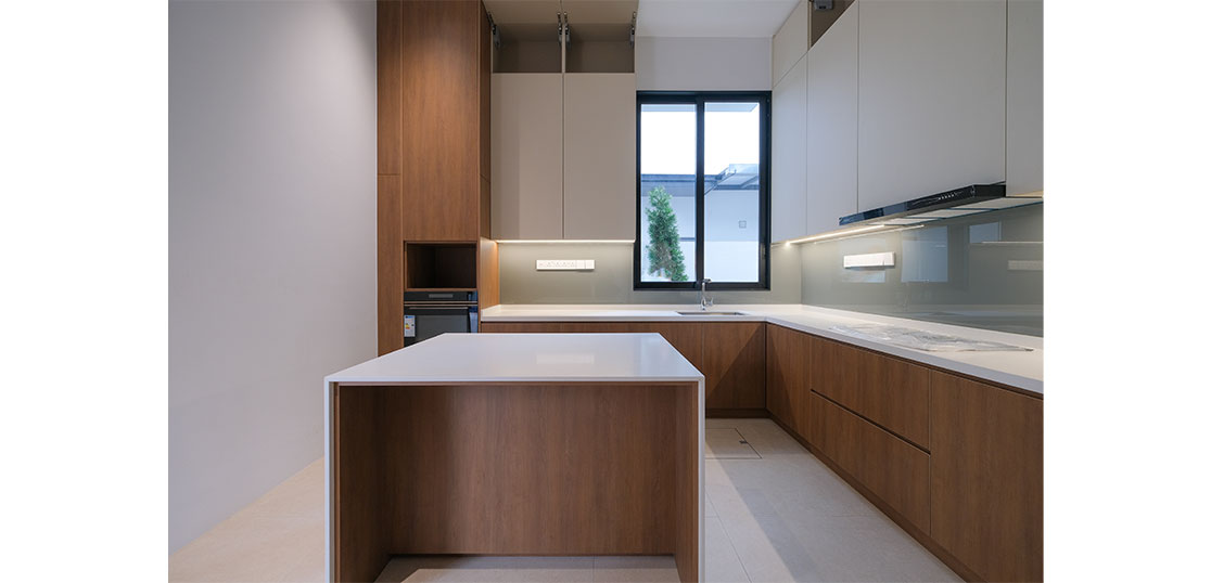 Jalan Cherpen comprises three storeys and an attic, complete with a pool in the courtyard and a spacious car porch at the front of the house. The interior is thoughtfully designed for functionality, featuring well-appointed living and resting quarters, alongside dedicated spaces for family gatherings, a home office, and a family home theater room.