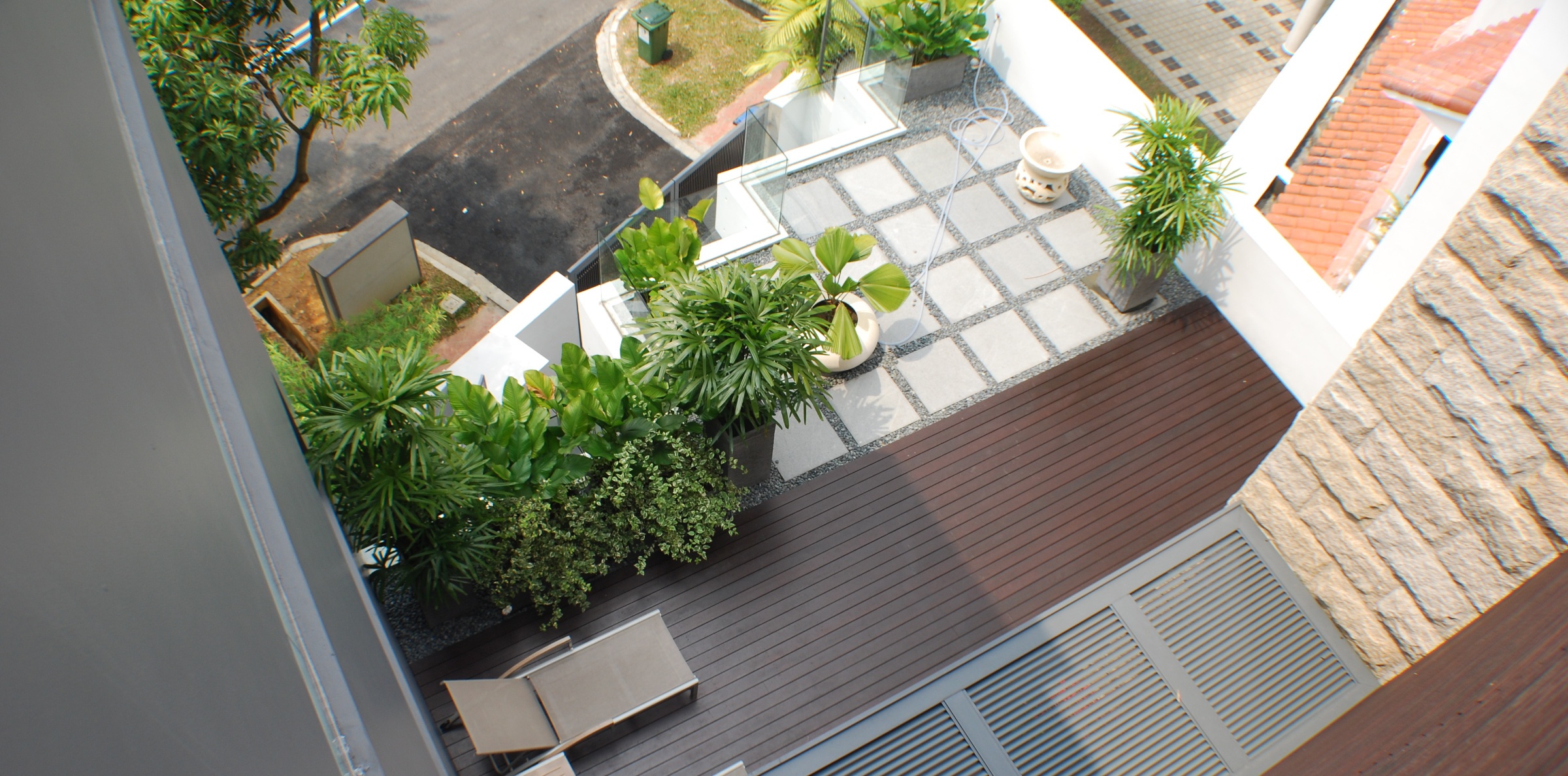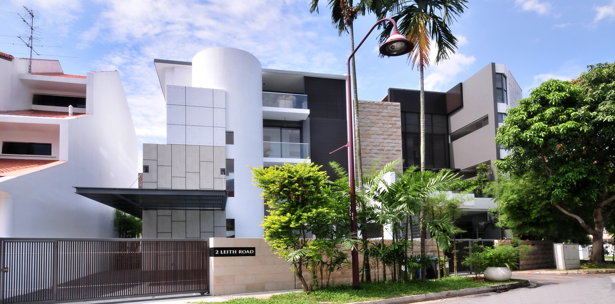 Both houses remain visually distinct from each other. A noteworthy feature for one property is the spiral stairs formed in a round arch, which served as a hightlight when viewed from the front facade. In the other property, modern asian influences were explored, particularly in the outdoor landscaping. Bamboo trees were lined along the perimeters of the house to lend a zen atmosphere