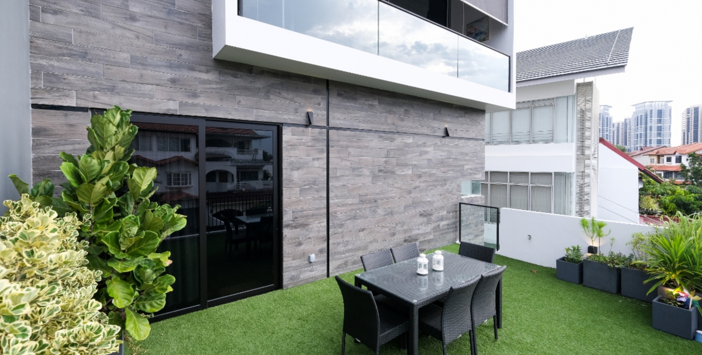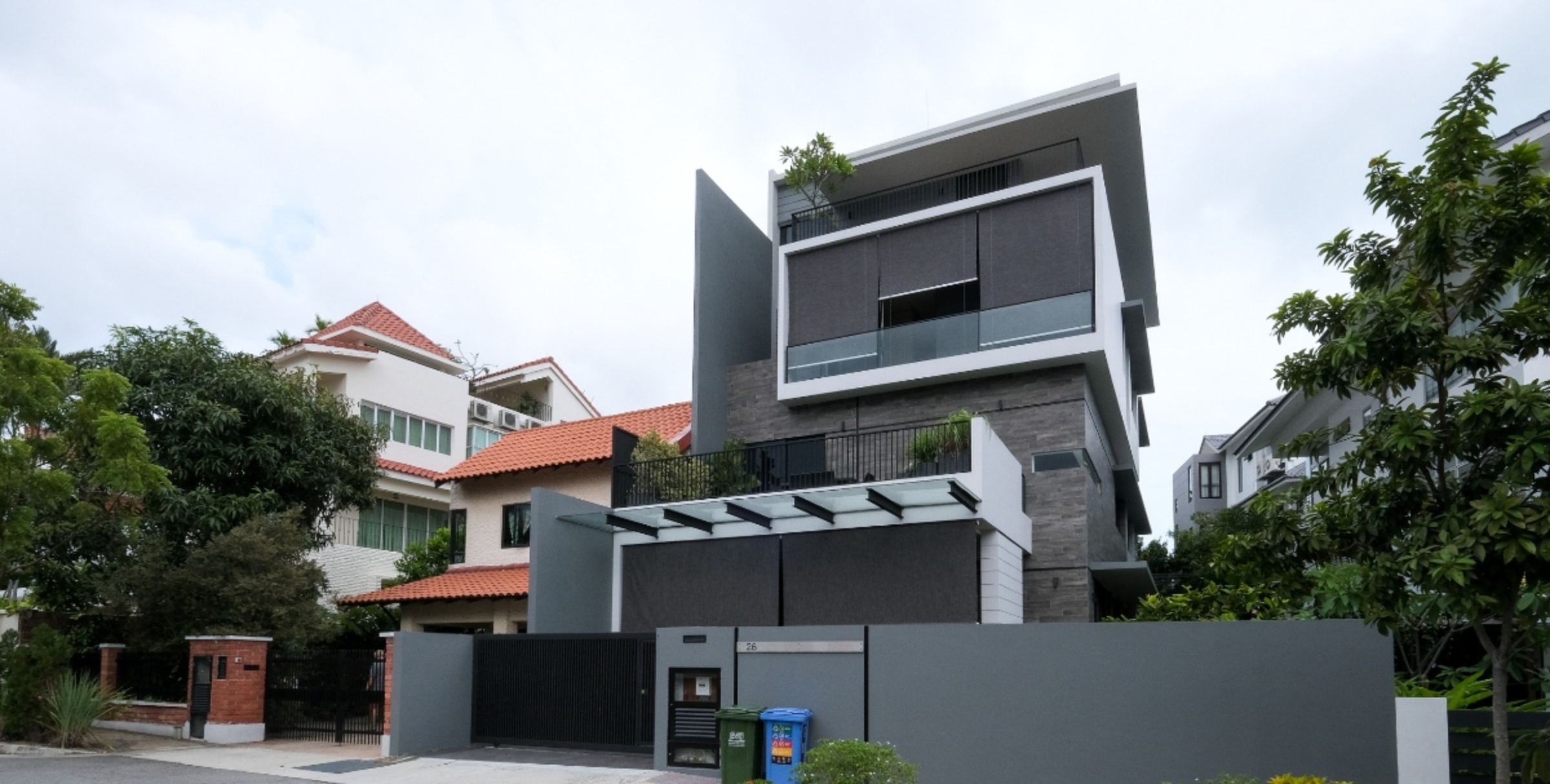 Conceptualized as a modern contemporary home, Lucky View was intended to help its homeowners maximize a 3,275 sqft plot of land. This was achieved by emphasizing articulated forms in the architecture, which gave way to intimate roof terraces, and by incorporating a mezzanine in the ground floor