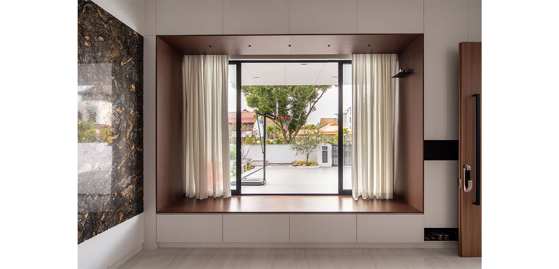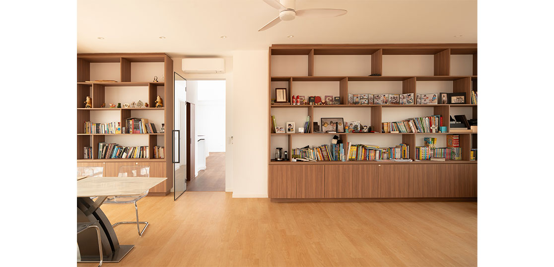 Space was catered for a baby grand piano at the entrance of the house, along with a playroom on the 2nd level. At the 3rd level, a large family study is designed to fit the family, as well as a corner for granny's lounge and bedroom. Adhering to fengshui, all bedrooms were designed to be on the left, with outdoor water features for wealth and abundance