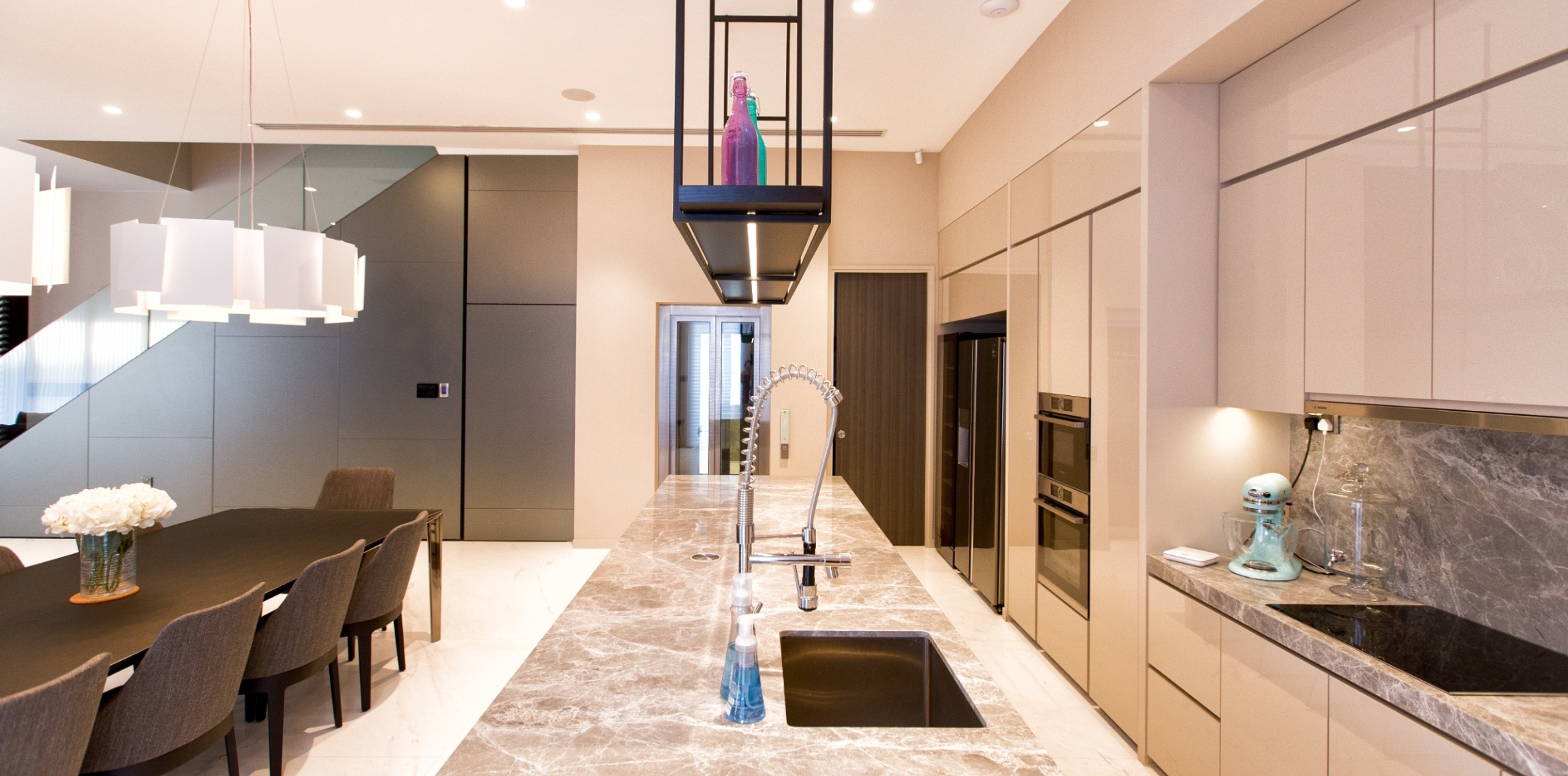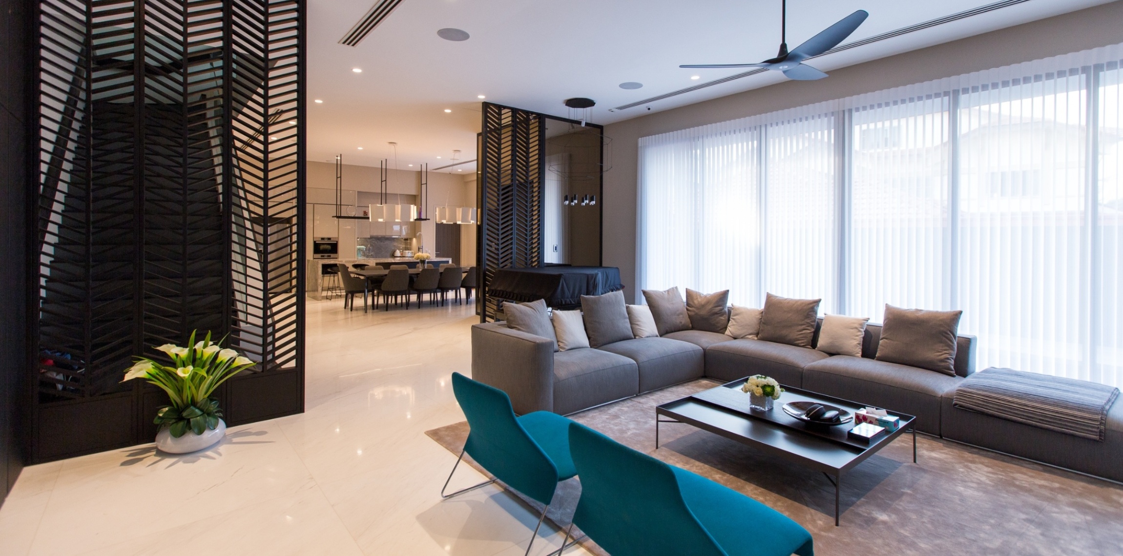 This 3-storey home has 4,955 sqft in GFA and features 5 bedrooms and several functional spaces catered to its homeowner's needs. This includes a children's play area, an outdoor gym, several entertainment areas, and an outdoor roof terrace for barbeques