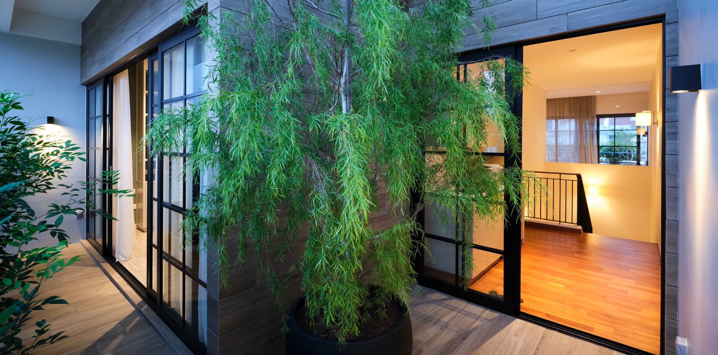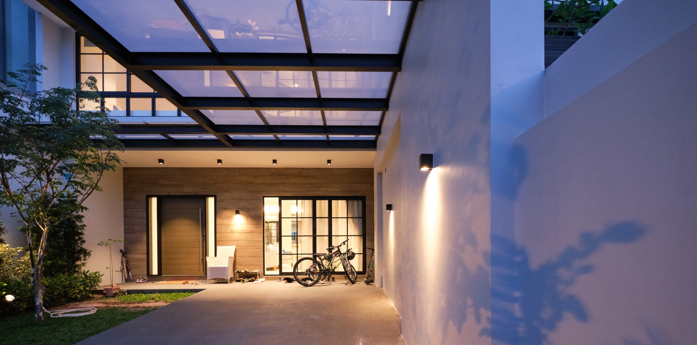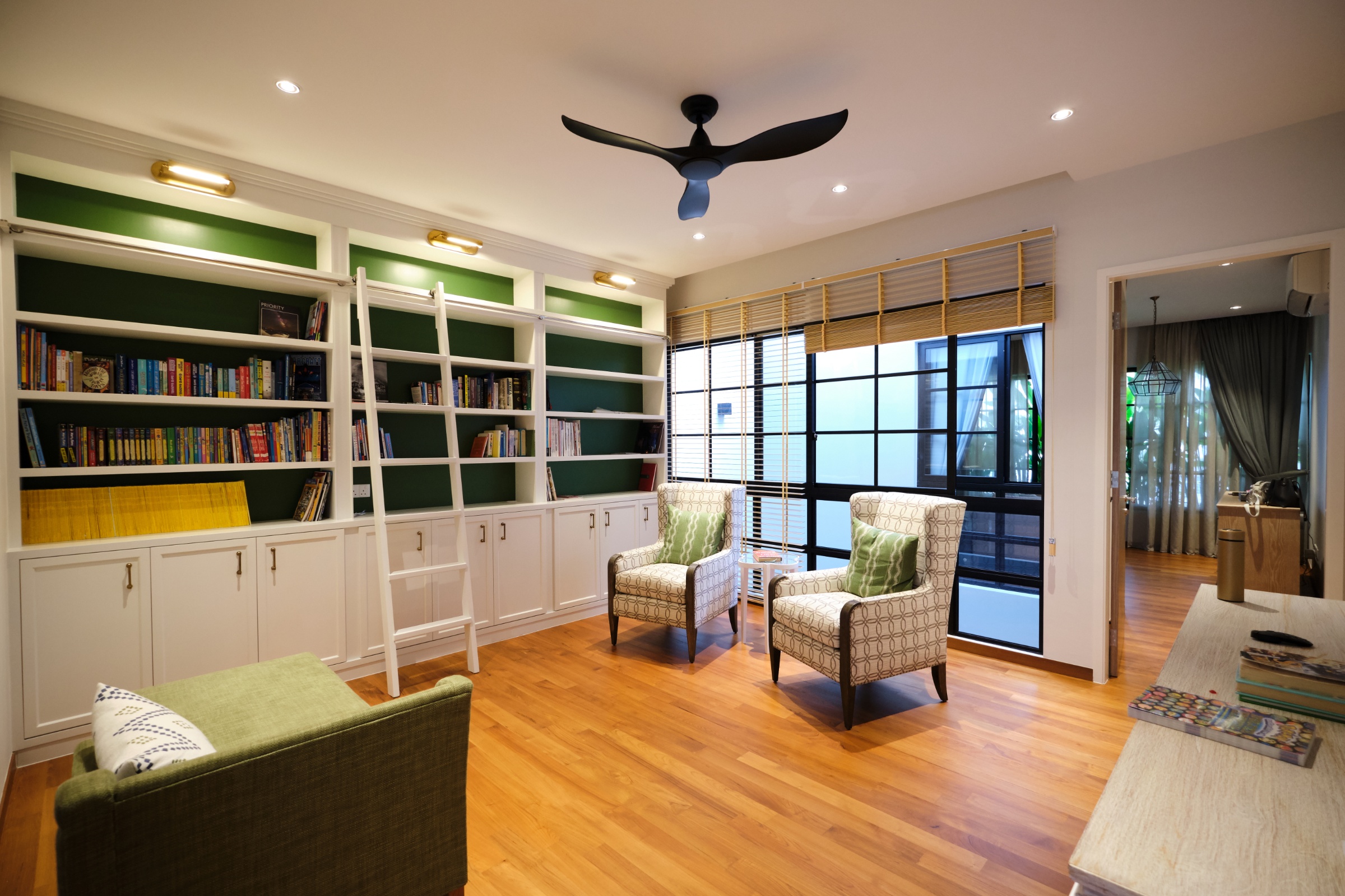 The key reconstruction elements included building a 3rd storey that included an open roof terrace, along with transforming the front facade. A back extension was also done to maximize the plot ratio, with a central courtyard built to relate the design across all storeys. Internally, a modern colonial aesthetic was used