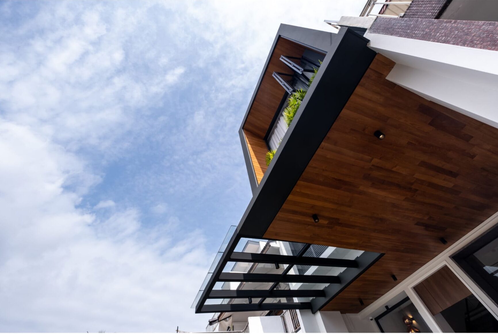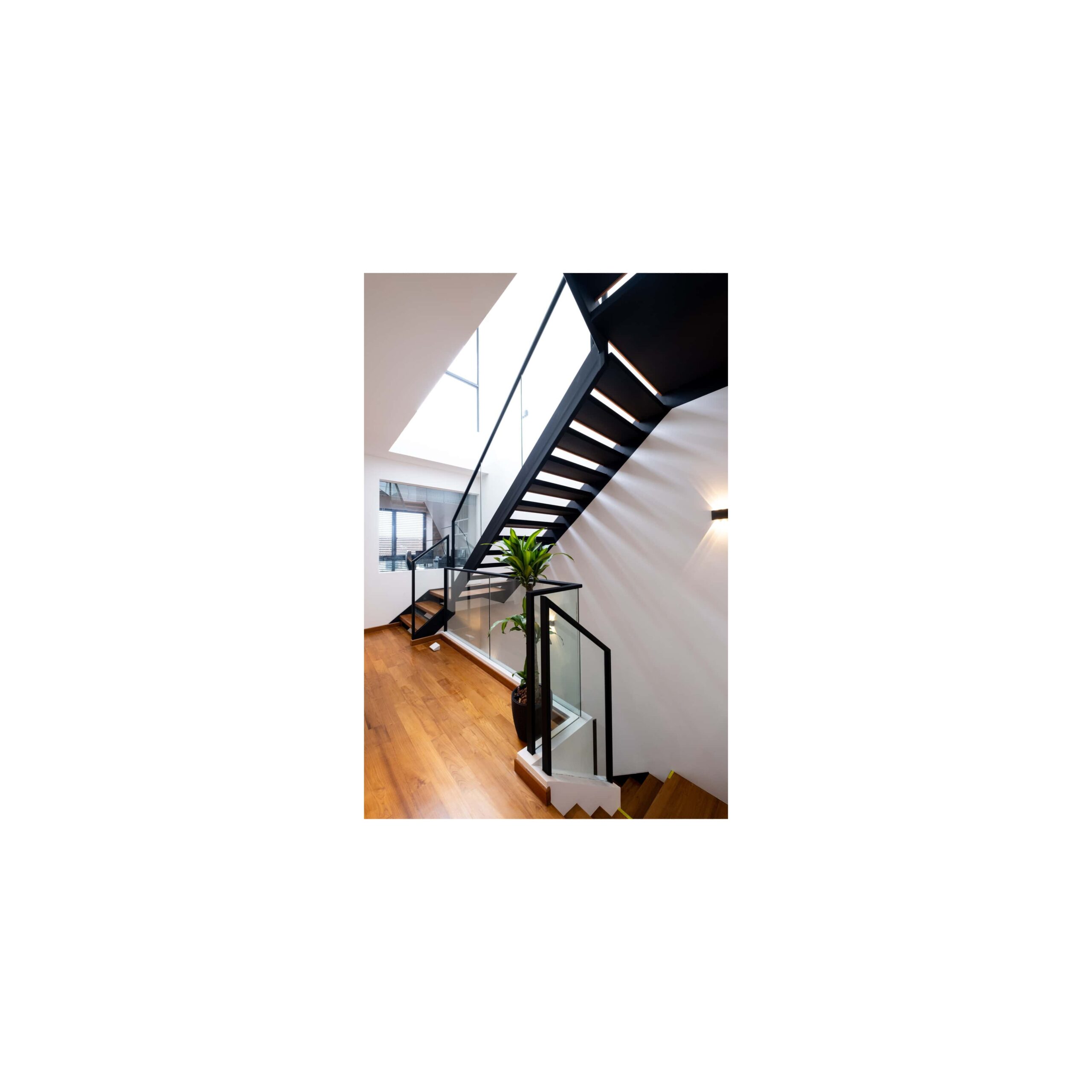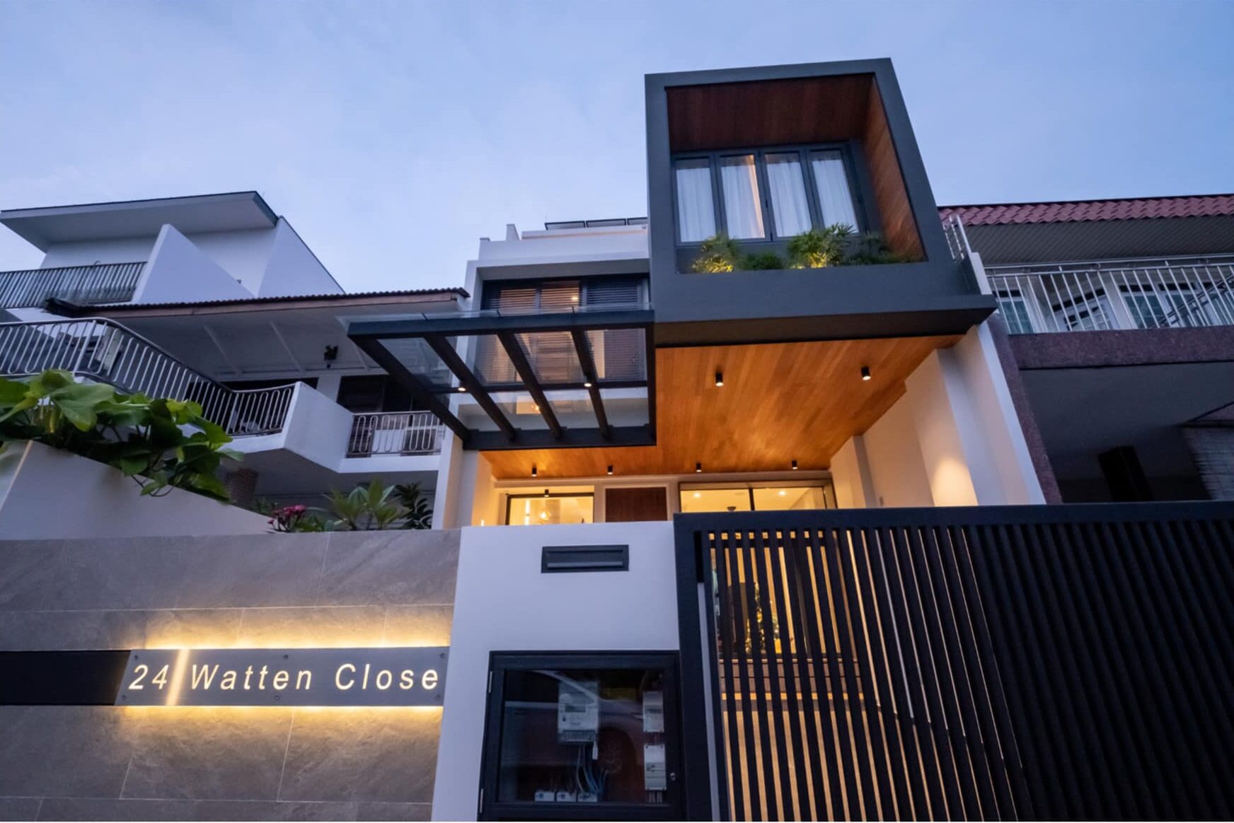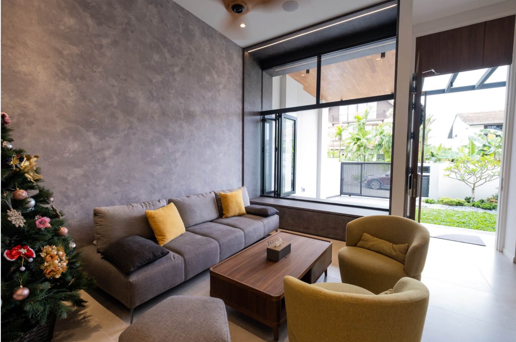 The house features integrated living spaces, to maximize a built-up area of 3,624 sq ft. The first storey emphasizes on hosting, catering to the family's love for gatherings and culinary pursuits. On the upper floors, private spaces were designed for the family, including a dedicated study area, and a functional gym at the attic