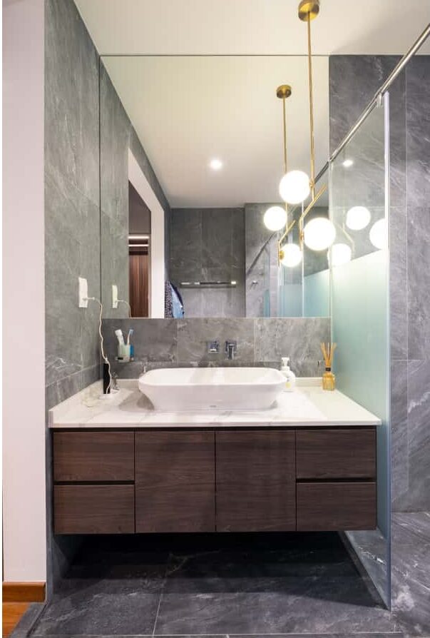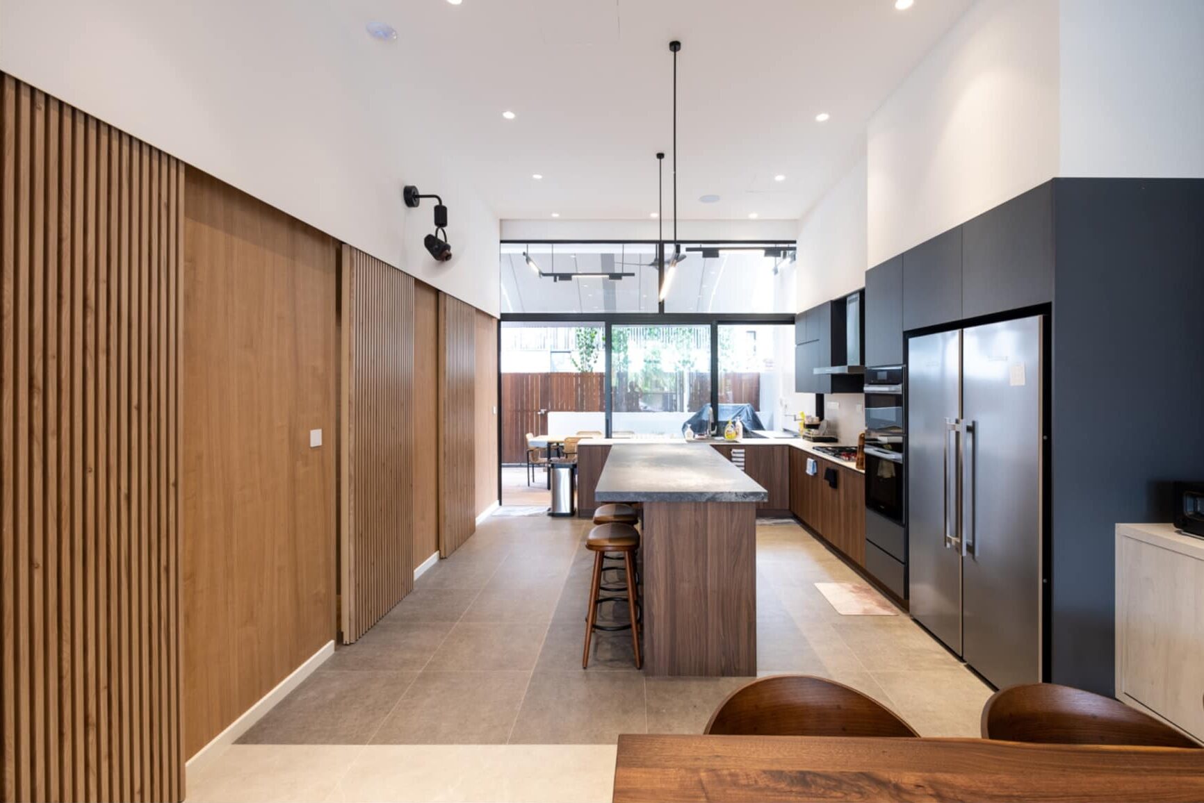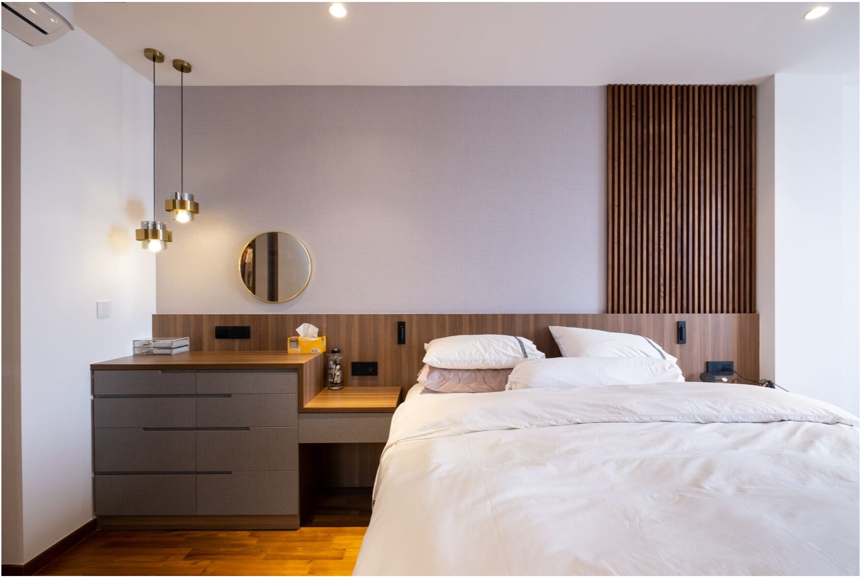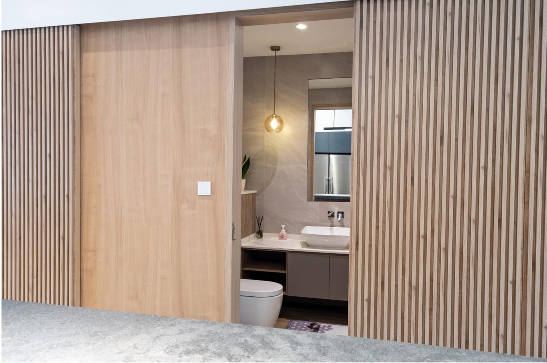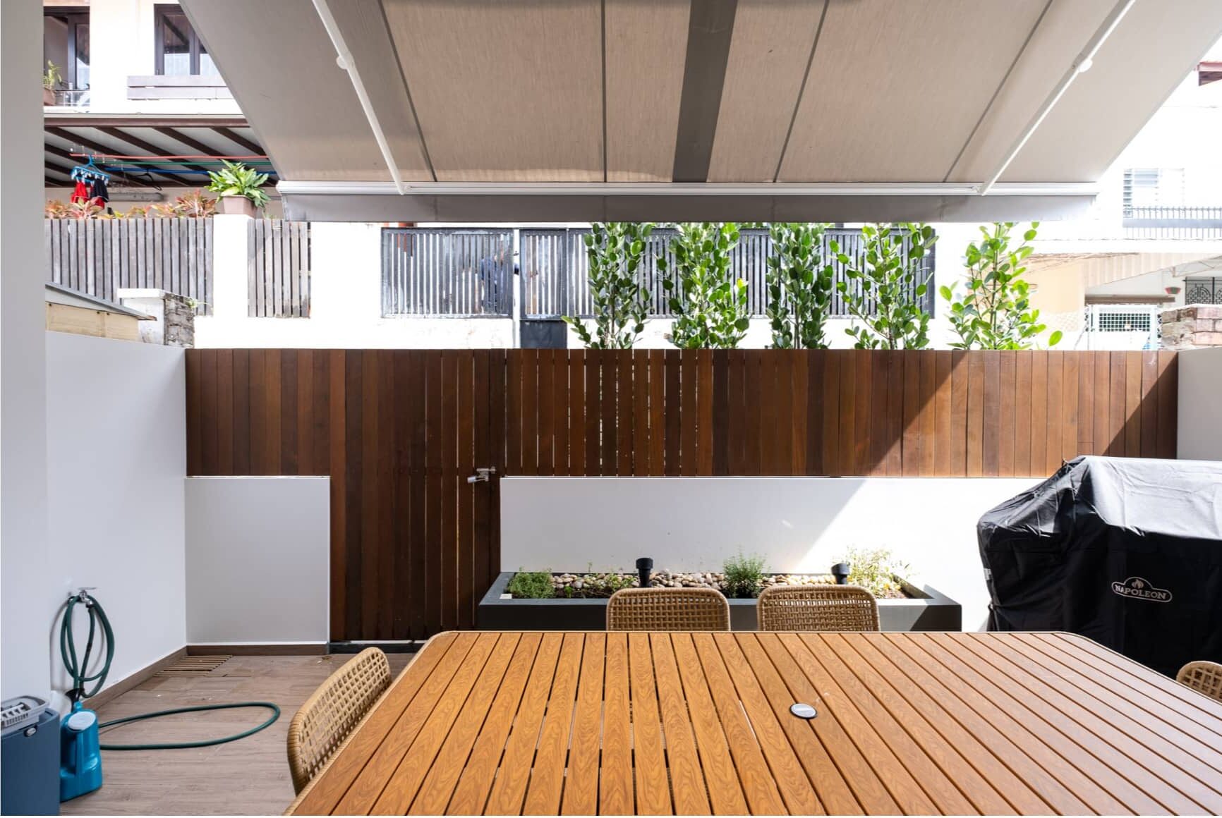 The house features integrated living spaces, to maximize a built-up area of 3,624 sq ft. The first storey emphasizes on hosting, catering to the family's love for gatherings and culinary pursuits. On the upper floors, private spaces were designed for the family, including a dedicated study area, and a functional gym at the attic